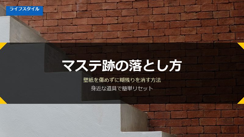 壁にデコレーション用として貼っていたマスキングテープを剥がしたら、粘着剤が白くベタベタと残ってしまった…そんな経験はありませんか。マステは「貼って剥がせる弱粘着テープ」として販売されていますが、長期間貼りっぱなしにすると粘着剤が劣化して糊残りや変色を起こすことがあります。とくに賃貸住宅では原状回復の問題にも関わるため、早めに適切な方法でケアしておくことが大切です。