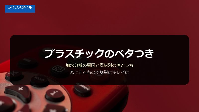 プラスチック・ゴム製品のベタベタは、加水分解や可塑剤の浸出が主な原因。正しい方法を使えば家にあるものでかなりキレイにできます。本記事のポイントを振り返ると: