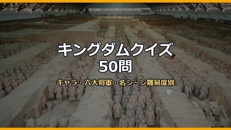この記事では、キングダムの登場人物・名シーン・六大将軍・合従軍編などから全50問のクイズを3択形式で出題します。初級から超マニアックな問題まで揃えているので、自分のキングダム知識がどのレベルか確かめてみましょう。